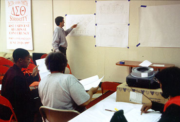 Delta House was an urban, senior affordable housing project for the Delta Sigma Theta Sorority in North Portland. The concept was modeled after a sorority house, a place that fosters a tightly knit community, except this was for seniors. Each resident had their own independent living unit. On the ground floor was a living room, dining room, common kitchen, porch, garden, social service rooms, and youth classrooms that gave residents places to socialize, mingle with neighbors, and mentor the youth in the community.