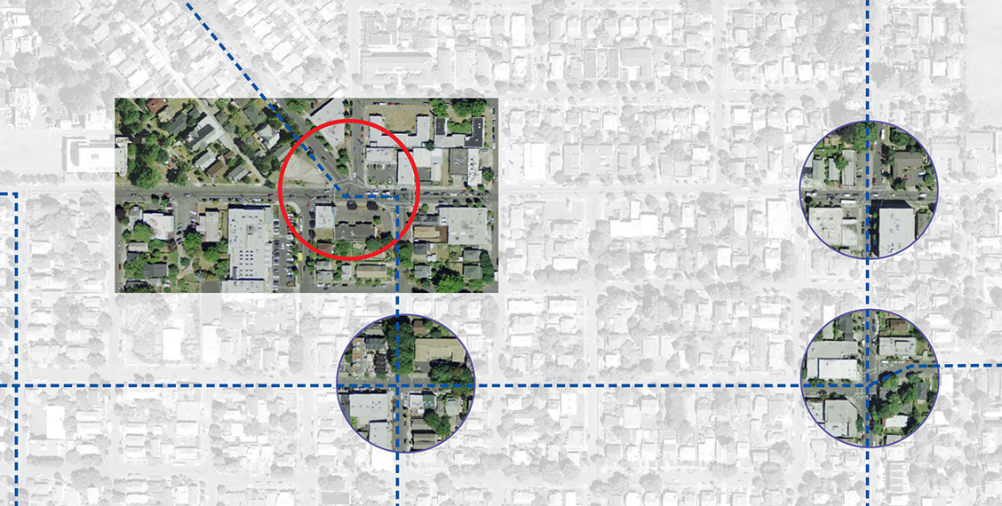 Division Street has great neighborhoods around it, and some good retail, but the street, especially around the ‘Seven Corners’ area, was a wide, inhospitable street with strip mall buildings in some places. The water bureau needed to run a new sewer down the street, and the community and City believed this to be the perfect time to address the quality of Division Street, and make it far more sustainable as well, with a large tree canopy and all public stormwater managed naturally in bioswales rather than a storm sewer. ‘Pro-time’ drive lanes for rush hour traffic promoted by transportation engineers made existing crosswalks long and dangerous, and added to impervious surfaces in the district. After much community pressure, pro-time lanes were eliminated in this area and bioswales and pedestrian friendly crosswalks were added. Bikes were also a consideration, as there was a main bike route from SE Portland going into center city through the Seven Corners area and Ladd’s addition. The new plan was designed to increase bike safety as well.