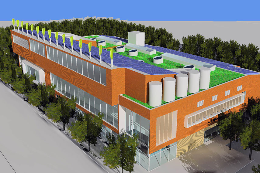 The East County Courthouse was designed to attain the highest LEED rating and be essentially off-grid, by both making its own energy and minimizing energy use. It was sited to maximize solar light and heat and prevailing winds. Shade trees helped reduce heat gain on the building in the summer. The Courthouse maximized the use of natural light, was super insulated, and received power from solar, wind, and geothermal sources. Potable water was conserved as much as possible. Grey water and rain water systems were included, as well as water recycling facilities. Minimizing the demand for city water and load on the City’s sanitary sewer system was a goal. Waste would be carefully managed to maximize recycling. And, there would be an ongoing program for sustainable building use when the Courthouse becomes occupied.