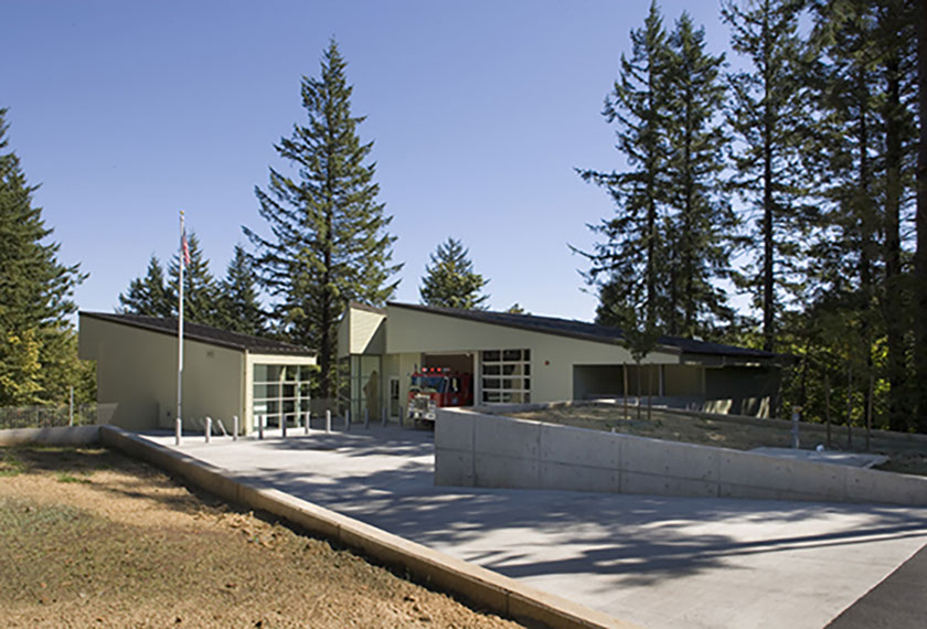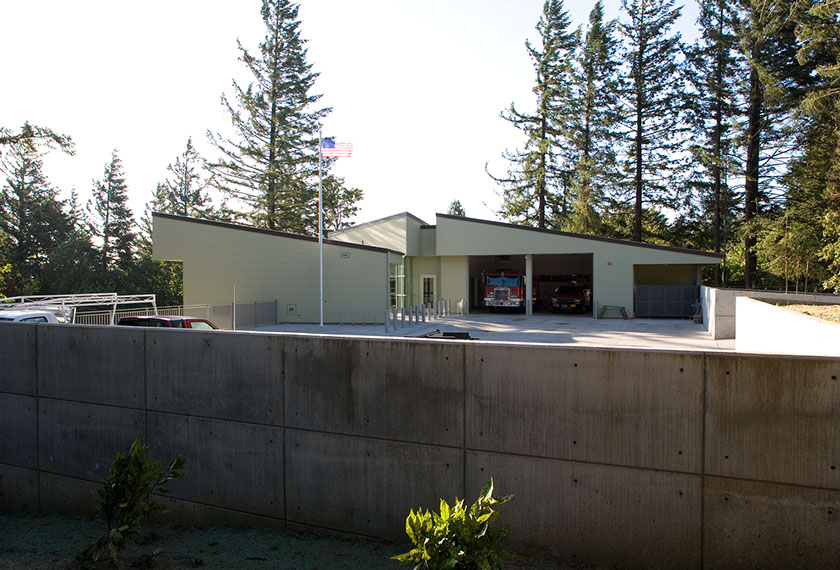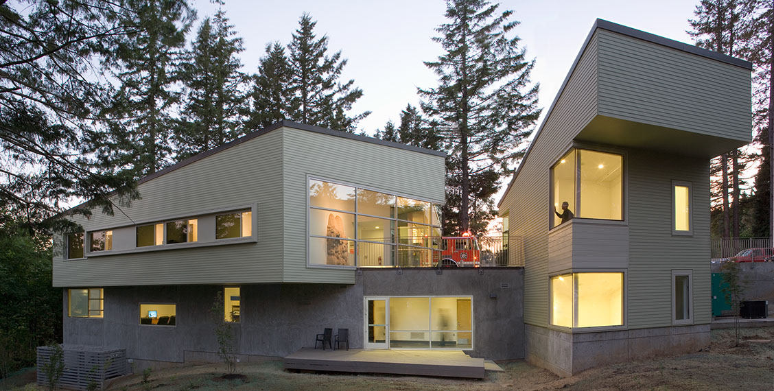 The Oregon forest sets the stage. Fir trees tower over the site. The built work is compact, and the rest of the area is undisturbed. The new place touches the surroundings gently. The site is on beautiful Skyline Boulevard – a meandering rural road that is beginning to feel the push of urbanism. Forest, farms, rock retaining walls and fruit orchards define Skyline just as they define the project.