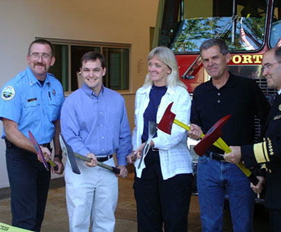 Commissioner Erik Sten, Bobbie Regan, Stuart Emmons and Fire Bureau officials at the Fire 27 opening.