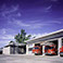 The addition on the west, facing the street, extended the existing apparatus bay to allow for new, larger equipment on the south side of the addition. In the center is a new entry court, with a circular roof opening overhead with two flagpoles protruding through it. On the north side of the addition is an open-air enclosure for an emergency vehicle. Facing the street is a curved masonry block wall with colored block glass infill pieces. The project has lighting to provide a focus on the colored glass and roof panels. The addition is scaled to be identifiable to cars passing by, as well as passengers. The design was influenced by roadside architecture from the 1930's - 50's and the some existing buildings on the street.
