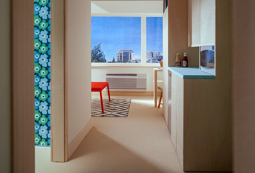 The 265 SF ImHomeToo studios have full baths and kitchenettes and are fully accessible. This project is designed as a prototype for subsequent projects of same and larger scale.