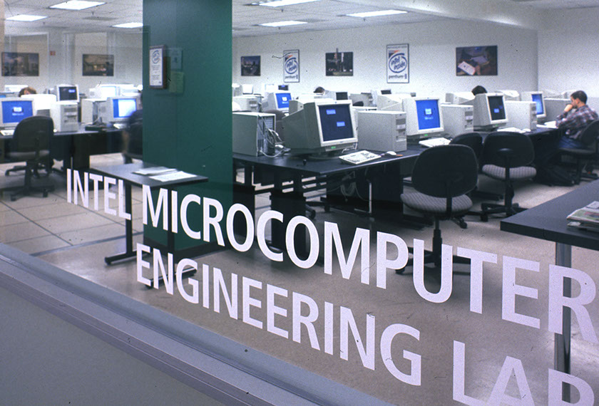 The project includes computer labs, classrooms, faculty and graduate student offices and support rooms. All labs are located in the center portion of the suite on raised floor and the offices and computer rooms surround them.