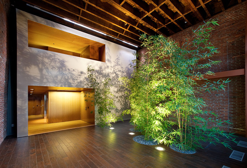 The design of the project features natural elements like bamboo, and large glass skylight fixtures to complement the historic brick features of the building.