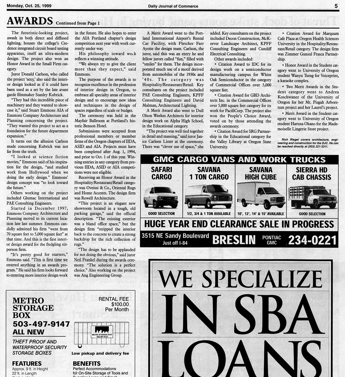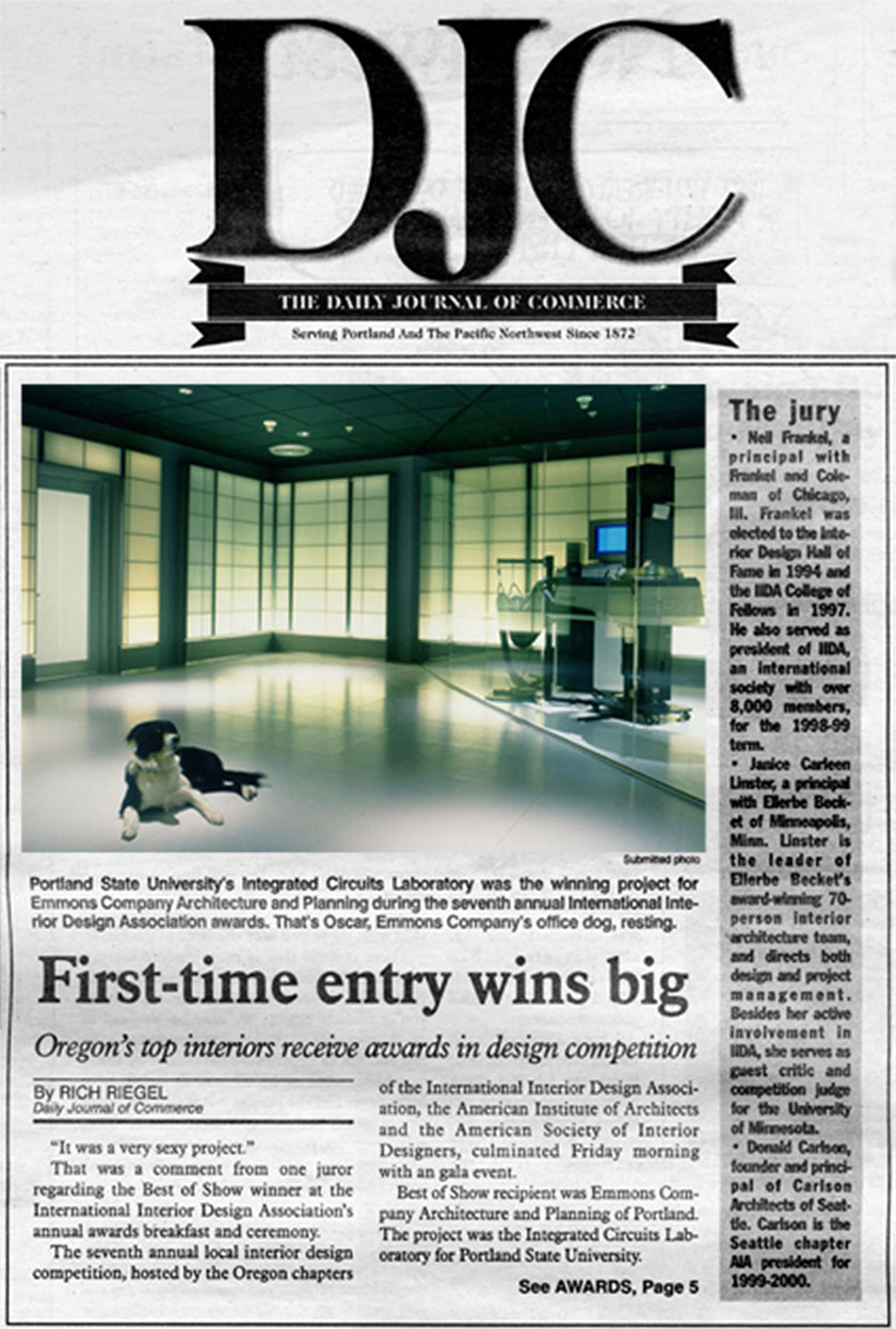 "Best of Show recipient was Emmons Architects of Portland. The project was the Integrated Circuits Laboratory for Portland State University.”