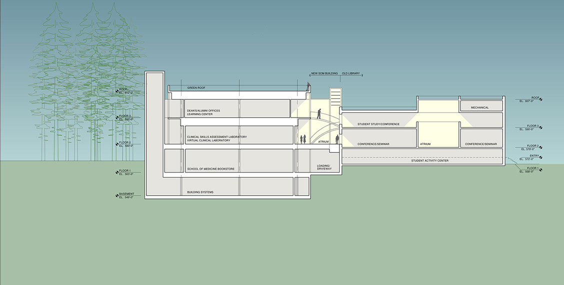 The new OHSU School of Medicine combined a restoration and reuse of the historic Library and Auditorium with a very modern and flexible