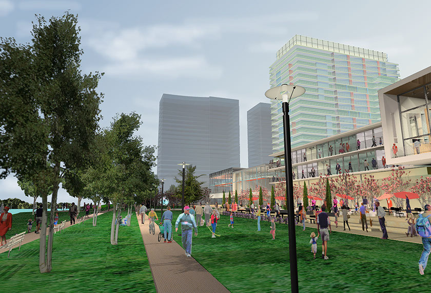The greenway park along the river’s edge is the primary focus of the project. The urban section opens up to the park through cafes, health clubs and public spaces. Sustainable design, wildlife habitat and a wide variety of settings and activities will give people a place to relax and socialize.