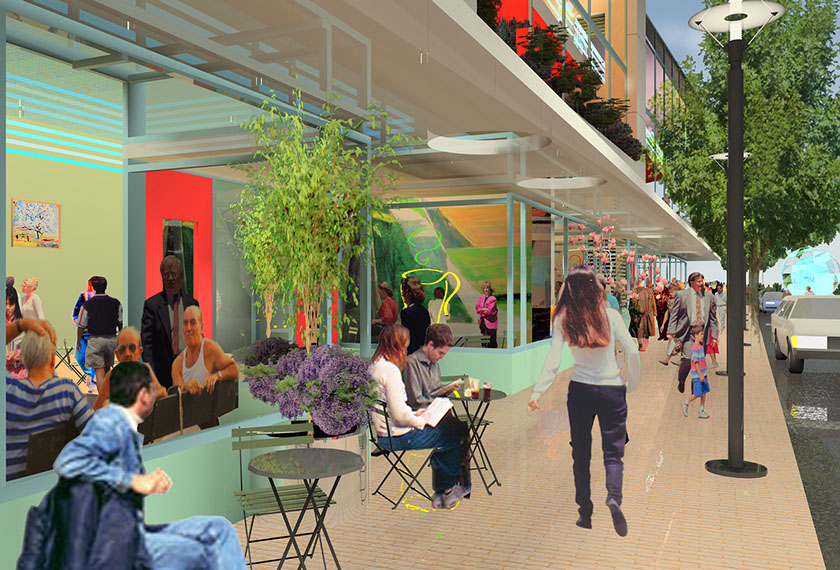 Streets are designed to encourage social encounters and entice people to wander through the district. Street edges and spaces are orchestrated to make the walking experience dynamic and enjoyable. Each street has its own character and builds urban vitality and diversity.