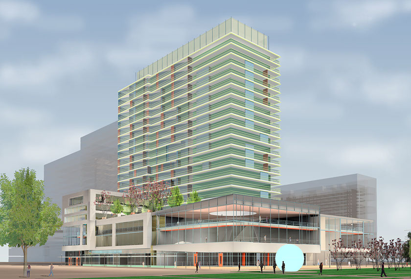 Crane Tower with Retail and Housing above. Inspired by the Zidell Cranes.
