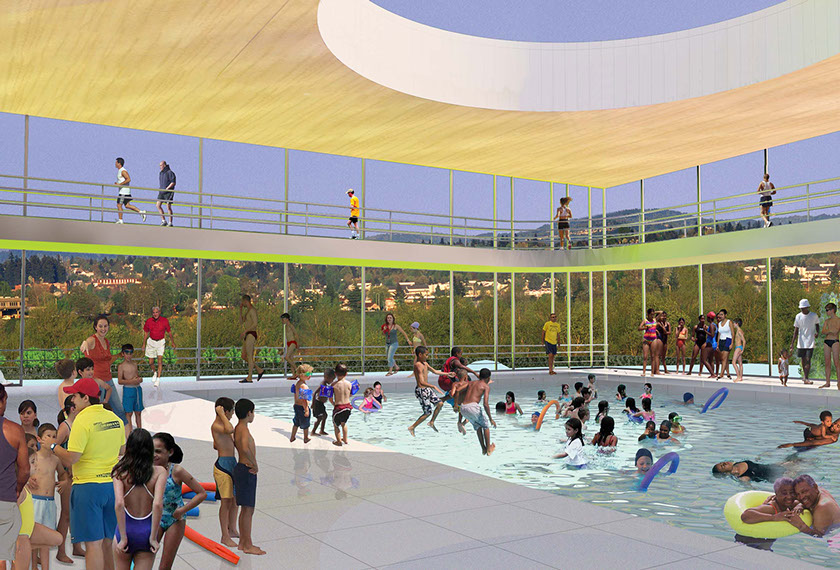 'The best pool in Portland', overlooking the Willamette River and Mt. Hood. One of the 'bests' that were designed to bring many people to SoWa.