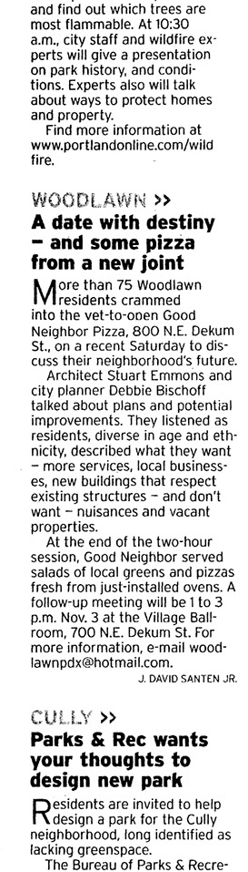 Woodlawn Triangle PressOregonian, November 1, 2007